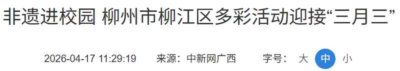 4月14日,柳州市柳江中学开展2026年铸牢中华民族共同体意识宣传月启动仪式暨柳江区非遗传承展示活动,依托“广西三月三”节庆契机,将民族团结教育、劳动实践与非遗保护有机融合。