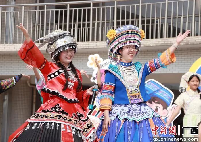 “我们不仅在‘三月三’穿民族服装,平时美术课也画绣球,音乐课也学唱山歌。”一年级学生覃诗璇开心地描述她的校园生活。