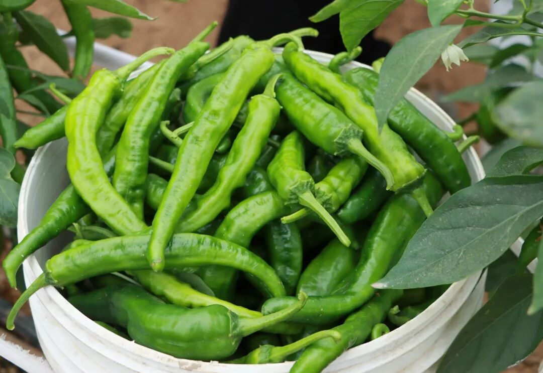 “今天计划采摘2万斤,经过分拣、包装,将销往广东、湖南、江西、上海等地,实现从田间地头直达各市场,让各地消费者都能品尝到来自穿山镇的新鲜美味。”竹山村村民委员会副主任周开殿介绍道。此次采收的辣椒品种为湘研55号,果形顺直匀称、色泽翠绿鲜亮,果肉厚实脆嫩,辣味适中且自带清香,不仅耐储运、商品性佳,更兼具出众口感与优良品质,是市场上备受经销商和消费者认可的优质品种。目前,该品种辣椒价格随市场浮动,当前市场价约10元/斤。