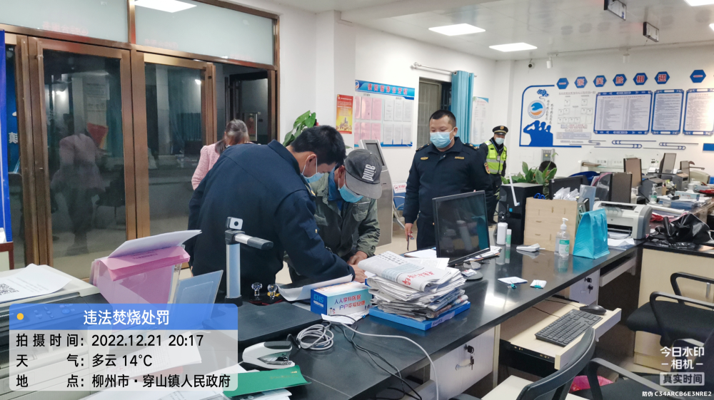 近日,柳州市污染天气应急指挥部办公室启动第七次污染天气黄色预警(III级)响应程序,要求各镇严格秸秆禁烧管控工作,加强巡查,严管重罚,坚决制止焚烧秸秆行为。穿山镇联合区城市管理行政执法局对5起露天焚烧秸秆行为进行查处,对当事人作出顶额处罚,继续深入实施铁腕控烧,有烟必查,有火重罚。
