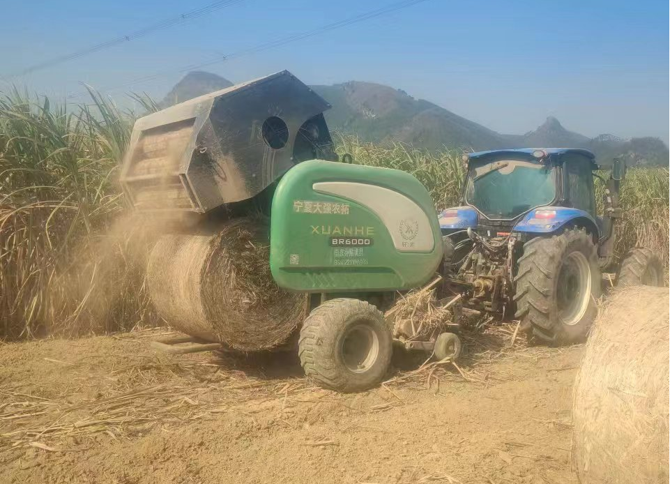 图4:为减少机器对蔗种的碾压,选用小机械进行打捆作业