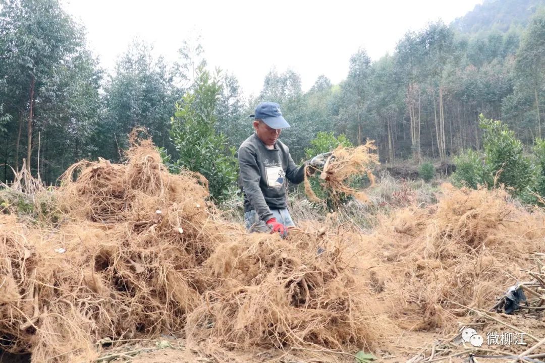 “当下正值五指毛桃采收季,这几天老板叫我们过来帮忙采收,工期大概有20天,每天收入是150元,这份工作对提高我们的家庭收入非常有帮助。”村民熊造诺一边采收五指毛桃一边说。