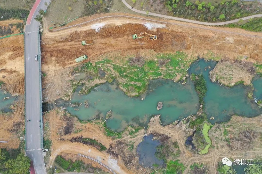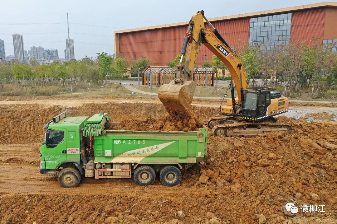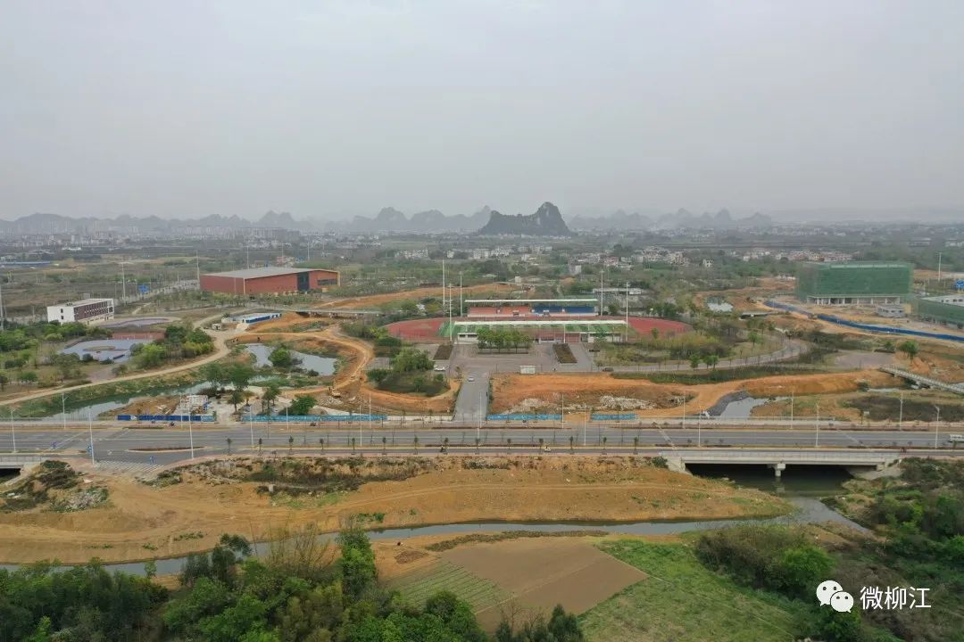 据柳州市建筑工程集团有限责任公司项目总工程师卢德选介绍,柳江体育园河道治理已完成保村河排水沟建设300米,土方开挖10000立方米,上游导流渠开挖、清表、亲水平台基础开挖和换填片石等工作,目前东一路和南三路便道出口及施工便道已修整完成。
