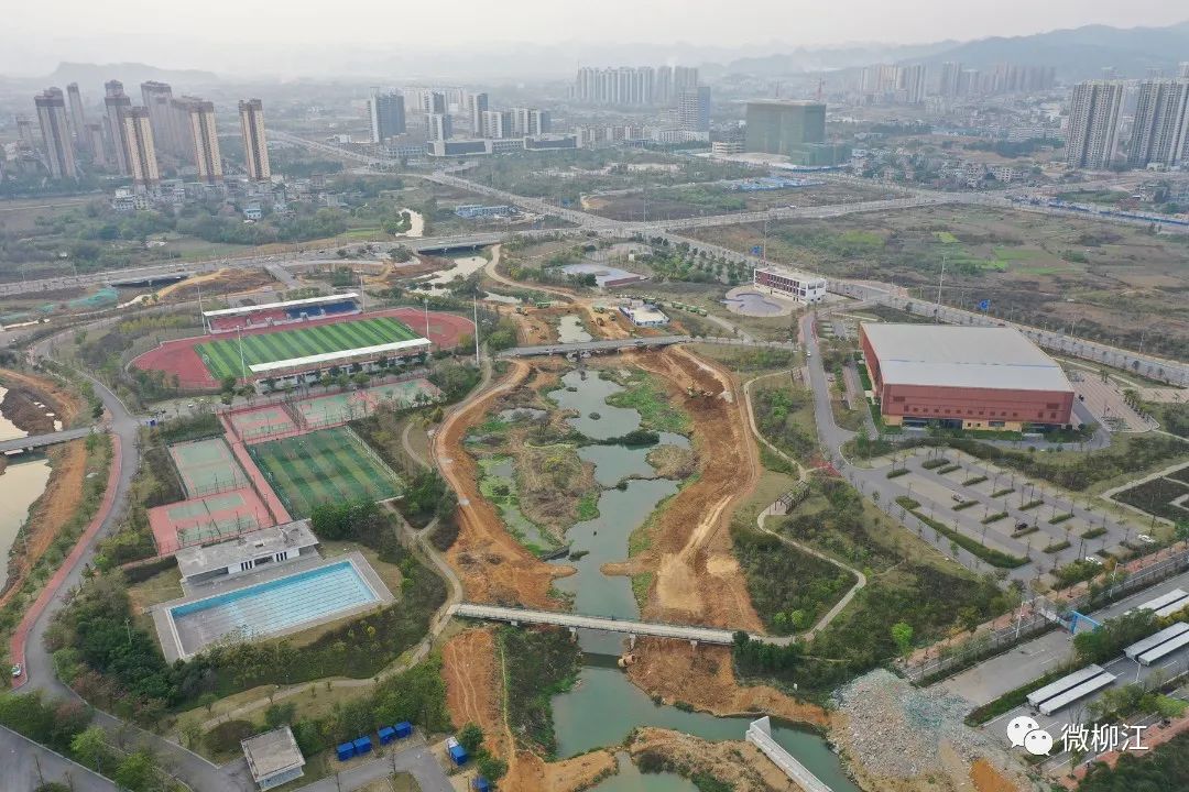 记者在现场还了解到,当前的主要任务是对园内保村河、进德河段以及何村河—进德河连通段进行河道整治。柳江体育园段(基地红线范围内)河道整治总长1.522km,并在保村河设置体育园段蓄水坝1座、在进德河体育园段设置蓄水坝1座、在体育园支流设置蓄水分洪坝1座。