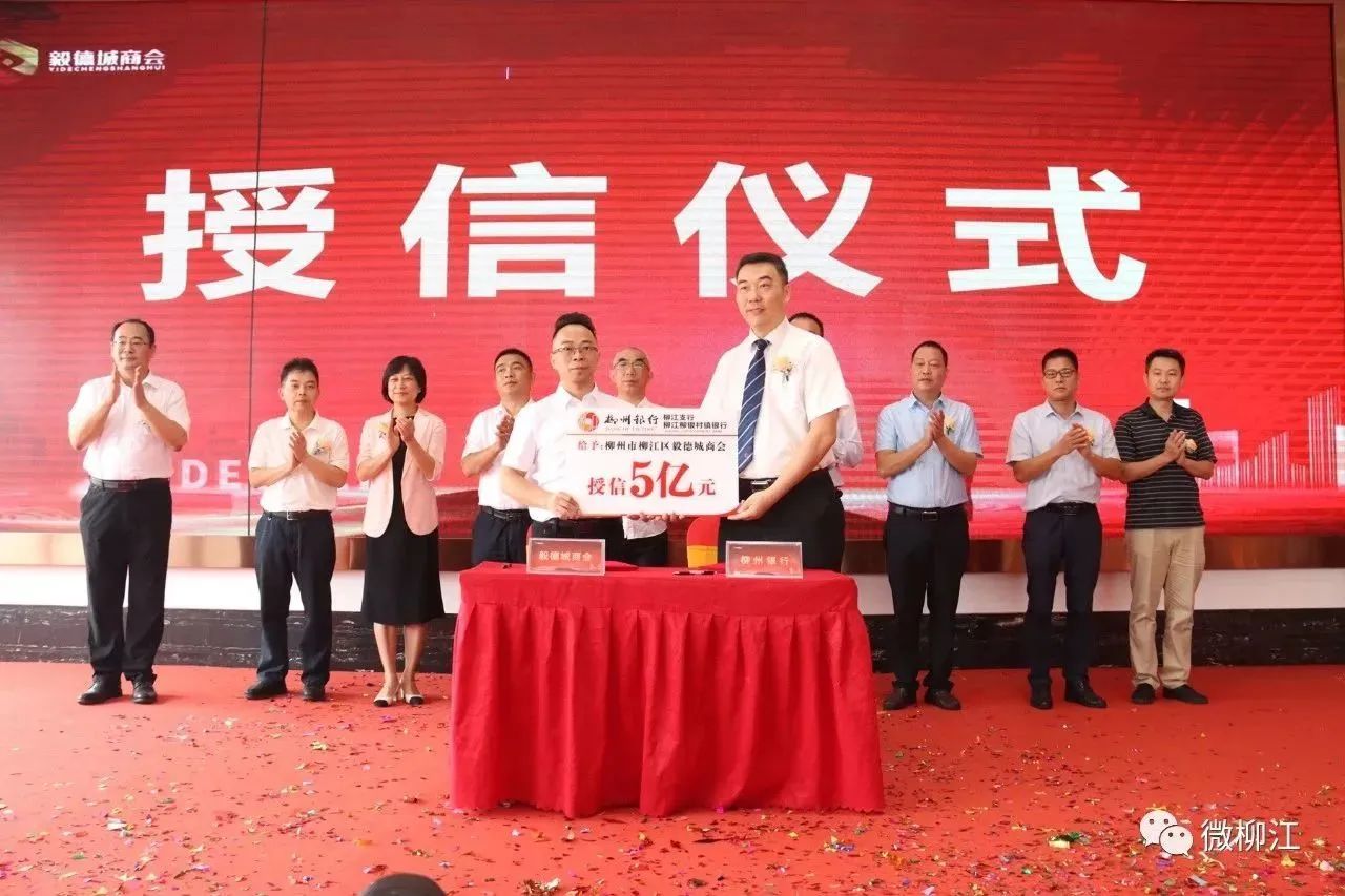 仪式上宣读了柳州市柳江区毅德城商会理事以上人员选举结果,与会领导为商会会长、名誉会长等授牌。随后,该商会和柳州银行举行授信仪式,柳州银行现场针对商会会员给予了总体授信额5亿元。