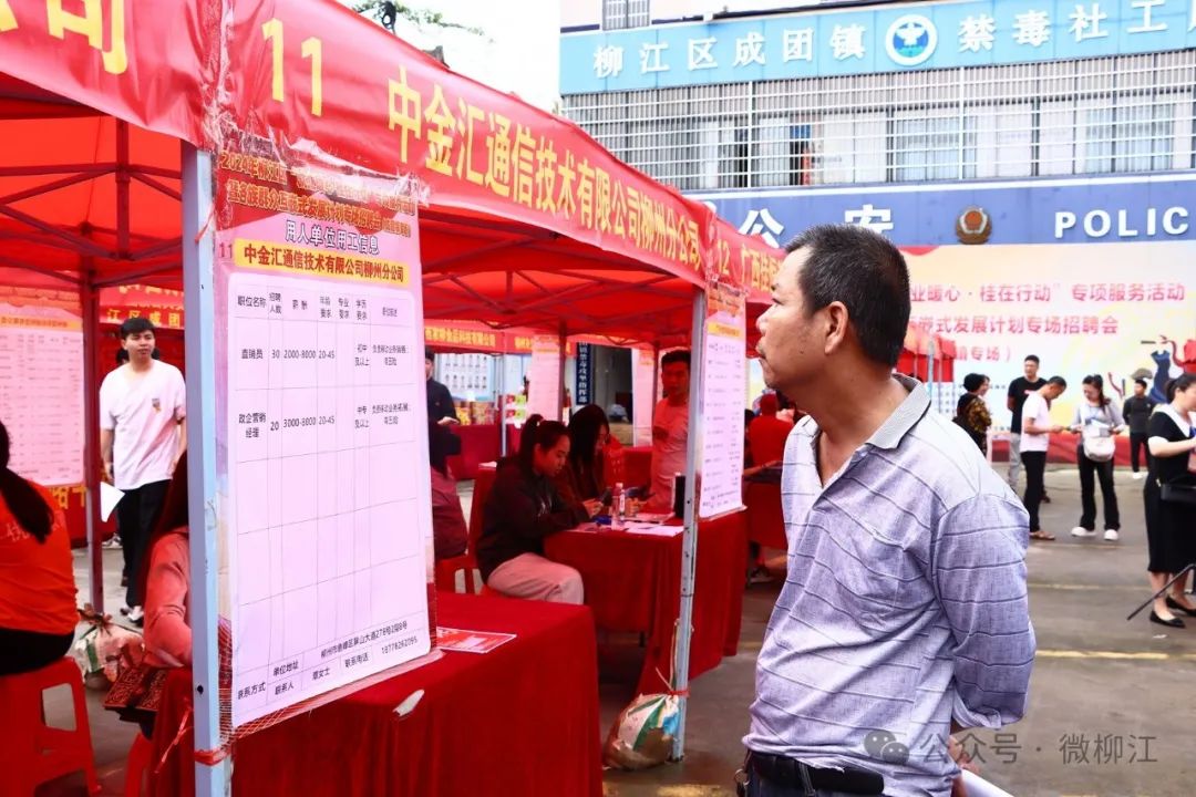 4月18日,2024年柳江区“就业暖心·桂在行动”专项服务活动暨各族群众互嵌式发展计划专场招聘会在成团镇举行。