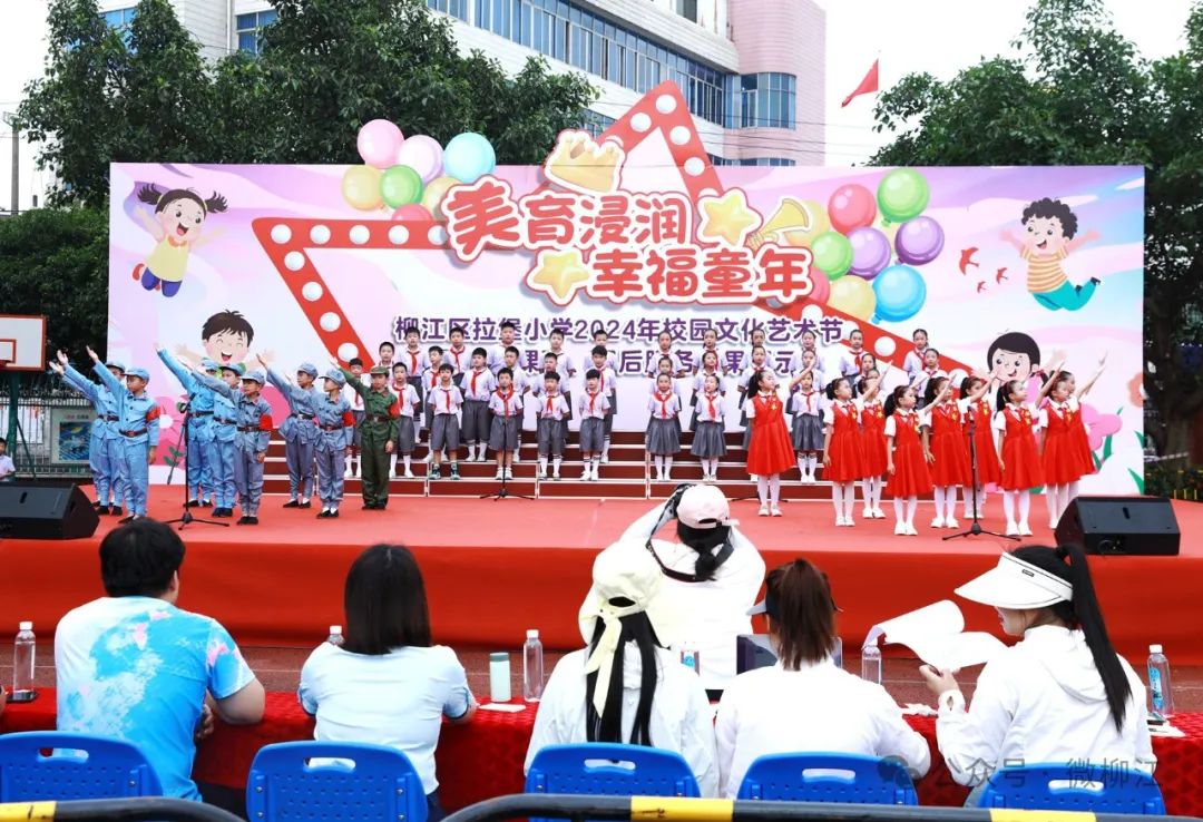 红毯映着盛装,欢歌伴着笑语。5月16日,柳江区拉堡小学校园里歌声悠扬,书声琅琅,热闹非凡,这里正在举行“美育浸润 幸福童年”2024年校园文化艺术节暨尚美课程展示活动,师生尽情享受一场校园文化盛宴。