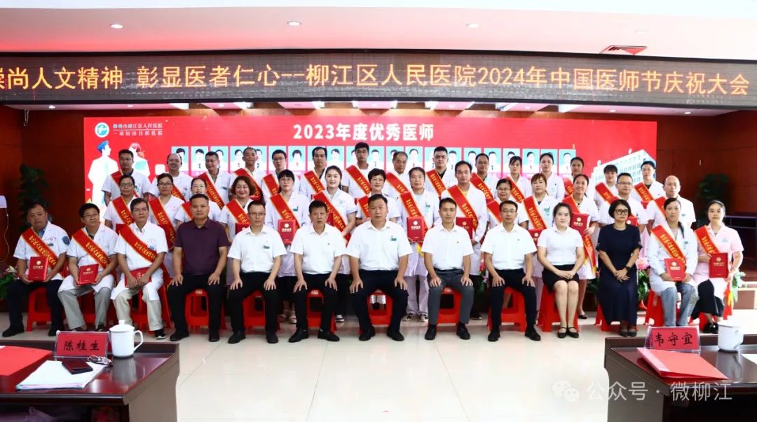 在第七个“中国医师节”到来之际,8月15日,“崇尚人文精神 彰显医者仁心”——柳江区人民医院2024年中国医师节庆祝大会召开。