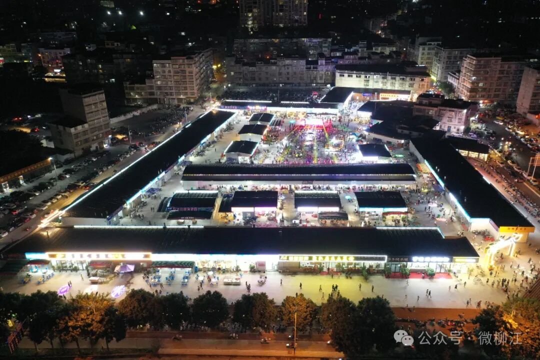 该夜市街设置儿童游乐中心、固定摊位、流动式摊位、集装箱式铺位、露天音乐酒吧,汇聚了特色美食、文创产品、柳江元素打卡点等,是集主题游乐、文化娱乐、休闲美食购物于一体的综合性夜市。看完晚会后,你还可以和朋友一起享受夜宵时光,烤生蚝、烤鸡翅、酸嘢、螺蛳鸭脚煲等广西美食应有尽有。