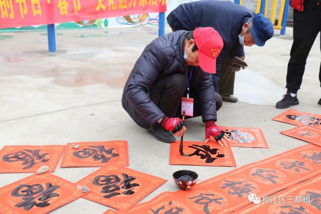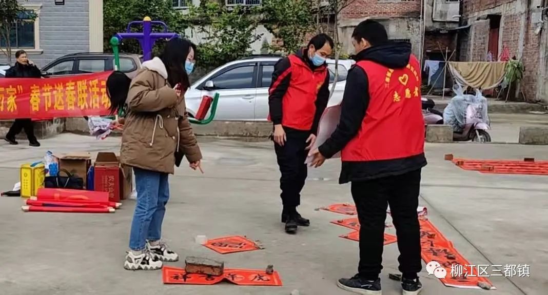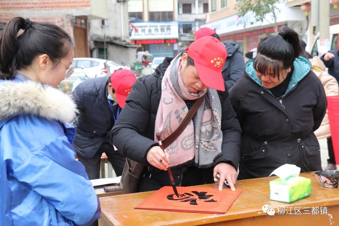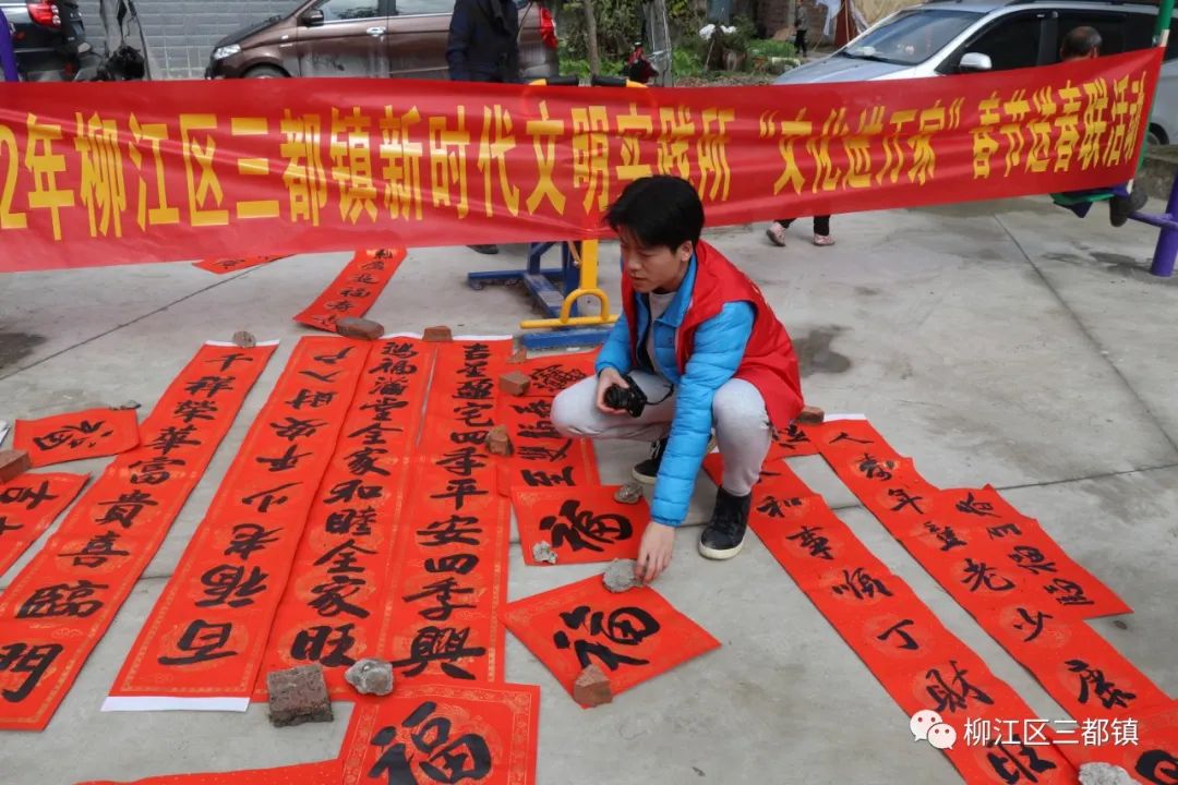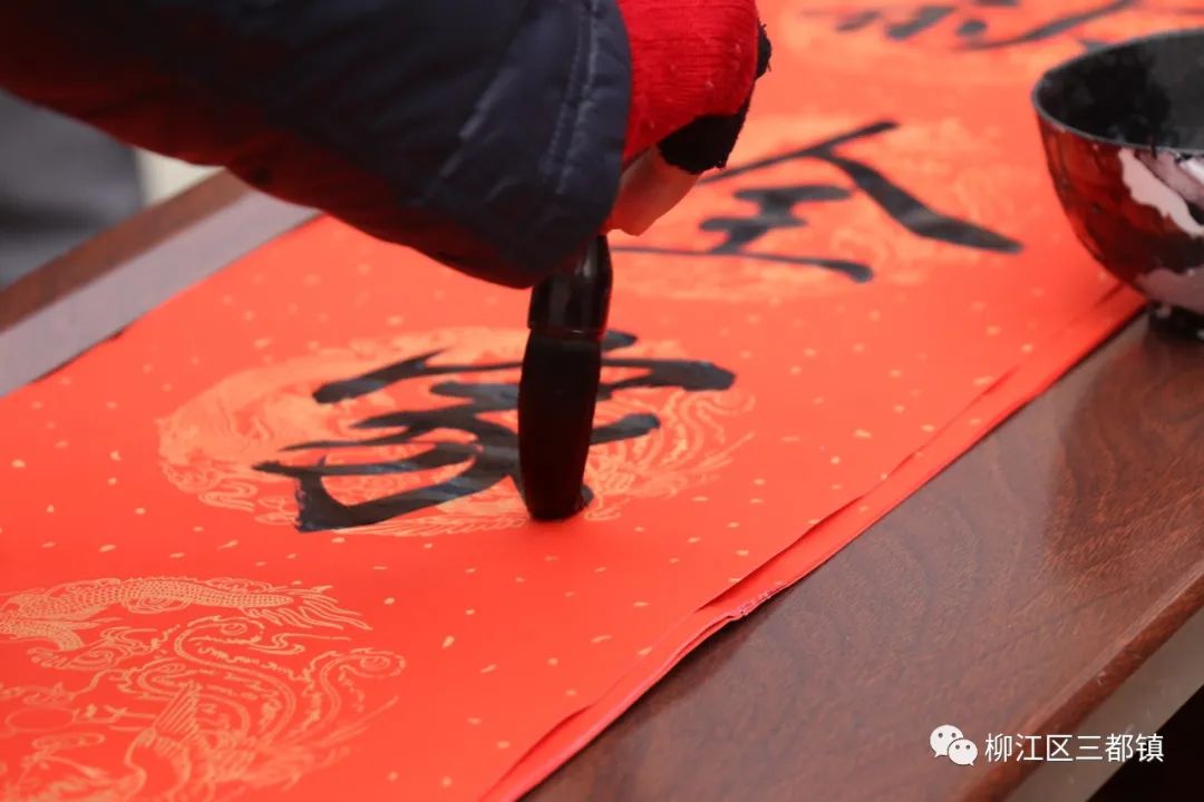 “千门万户曈曈日,总把新桃换旧符。”桃符,也作春联。贴春联是我国辞旧迎新的传统习俗,一幅幅红色的春联是老百姓们过年必须要有的仪式感。1月18日上午,在三都镇三都社区的党建小广场上,区文联、区文化馆、区书法协会及三都镇新时代文明实践所联合开展“文化进万家”春节送福联志愿服务活动,免费为群众写福字、赠春联。此时,小广场上晾晒着不少书法家们刚刚写好的福字和春联,满眼喜庆的颜色直接将年味拉满!