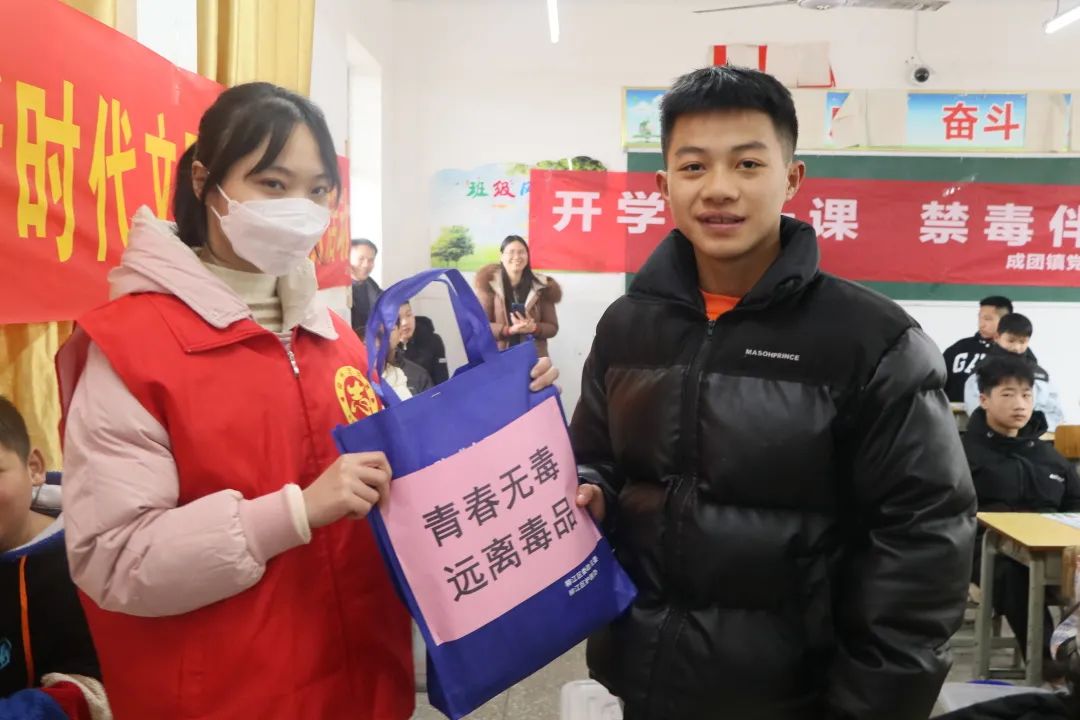 2月21日,成团镇禁毒办在成团中学开展“开学第一课”——禁毒专题教育课,充分发挥学校在青少年毒品预防教育的阵地作用,引导青少年树立健康向上的生活观念,切实增强学生识毒、防毒、拒毒意识,打好校园禁毒教育“第一针”。