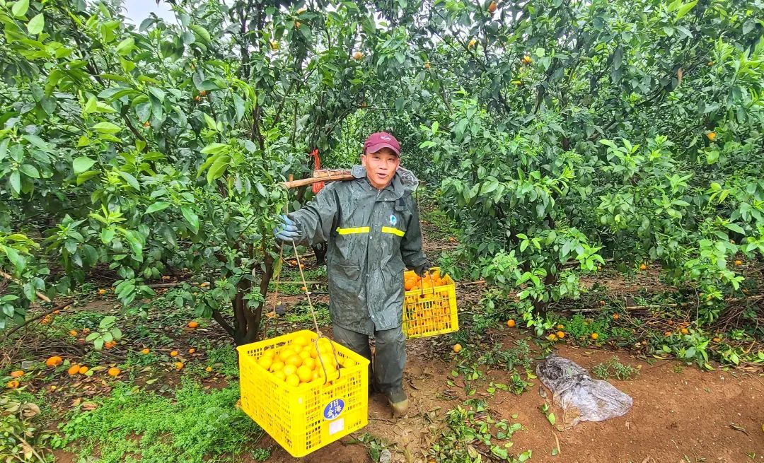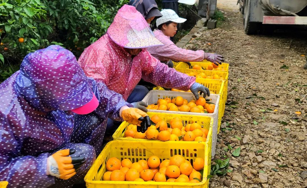 眼下正值沃柑丰收季,在拉堡镇基隆村大木利屯沃柑种植园里,一个个金灿灿、沉甸甸的果子挂满枝头,果农们正忙着采摘、挑选、装筐、装车,处处洋溢着丰收的景象。