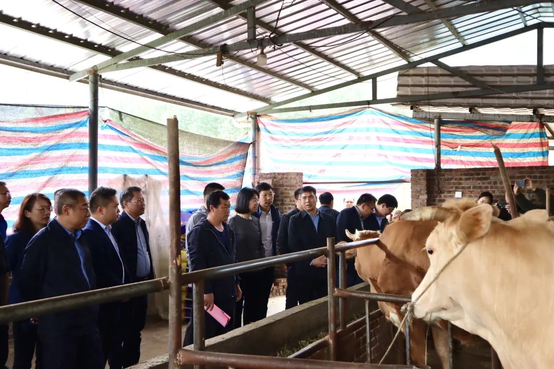 考察组来到土博镇定山村毛从屯,参观家庭农场的建设,察看、了解肉牛养殖、牧草种植情况,详细询问了种养规模、肉牛出存栏数、以及收益等方面情况。