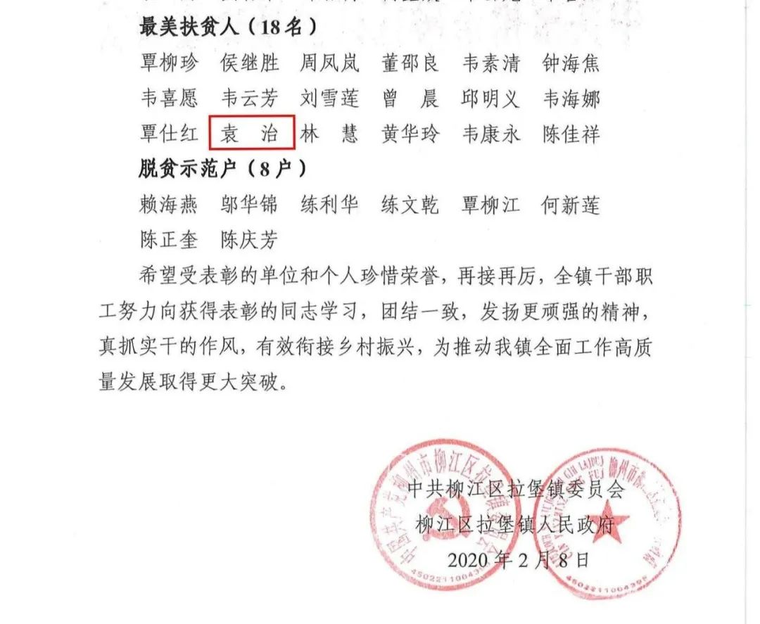 “政策往下落实,我们也要带着群众奋力奔跑,才能真正干好扶贫。”作为一名驻村脱贫干部,他尽心尽职,为帮扶对象寻岗位,修房屋,保学业,提收入,带领困难群众实现脱贫摘帽,袁治同志也获评柳江区最美扶贫人。