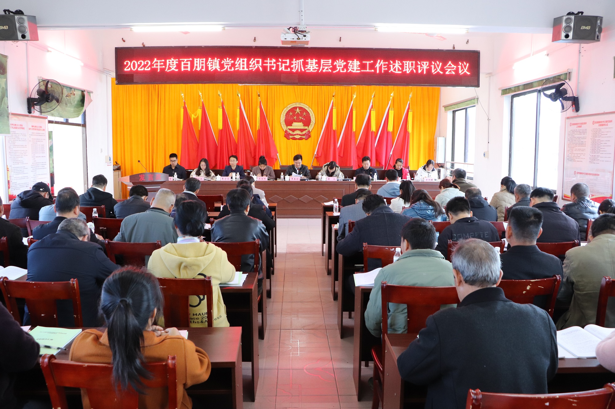 为深入学习贯彻习近平新时代中国特色社会主义思想,认真贯彻落实党的二十大精神,进一步压实党支部书记抓党建工作职责,力促百朋镇党建工作水平提质增效,3月27日上午,百朋镇召开2022年度基层党组织书记抓基层党建工作述职评议会,会议由镇党委书记覃春前主持,区委组织部有关同志到会指导。镇领导班子成员、镇各部门及站所负责人、各基层党组织书记、驻村第一书记、党员代表参加。