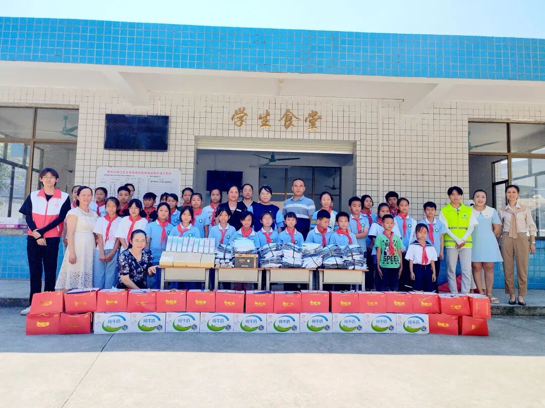在盘石小学,区团委,镇团委、禁毒办及广西柳州绿嘉园生态科技有限公司等爱心企业给30名同学送上校服、学习用品、牛奶等慰问品,活动现场充满了浓浓的节日气氛。收到六一礼物,孩子们爱不释手,脸上洋溢着灿烂的笑容。