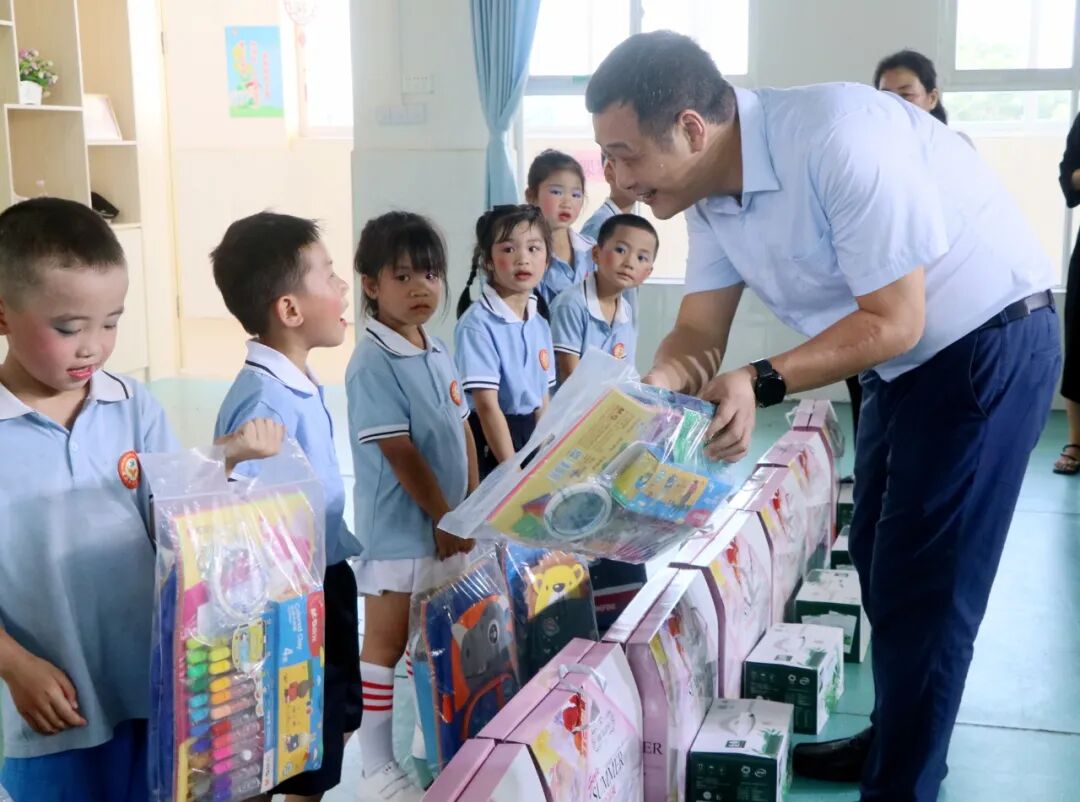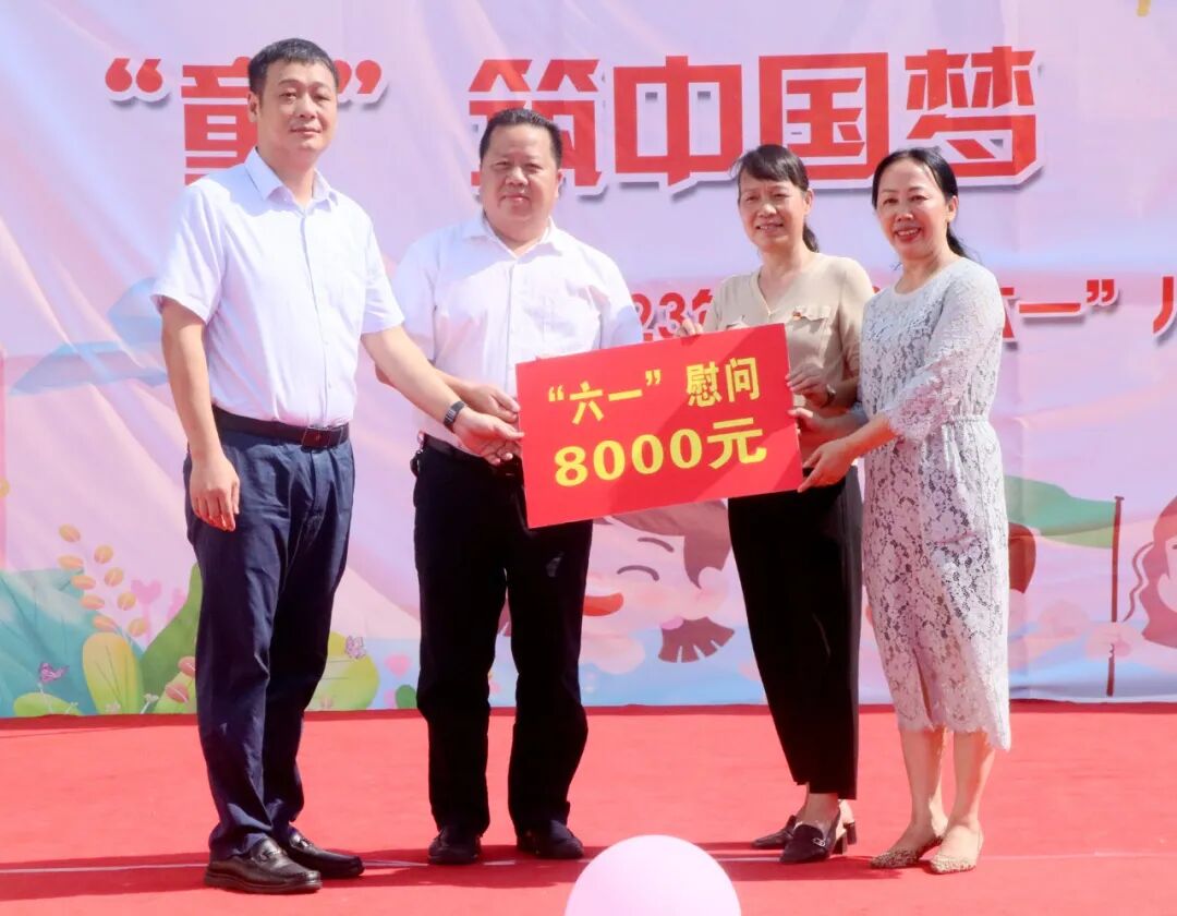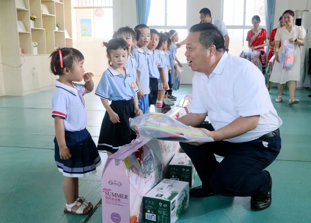 陈建军一行向幼儿园、困难儿童代表送上了慰问金及节日礼物,祝愿孩子们度过一个快乐的“六一”儿童节。