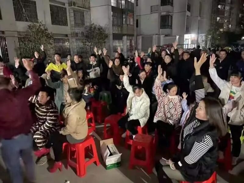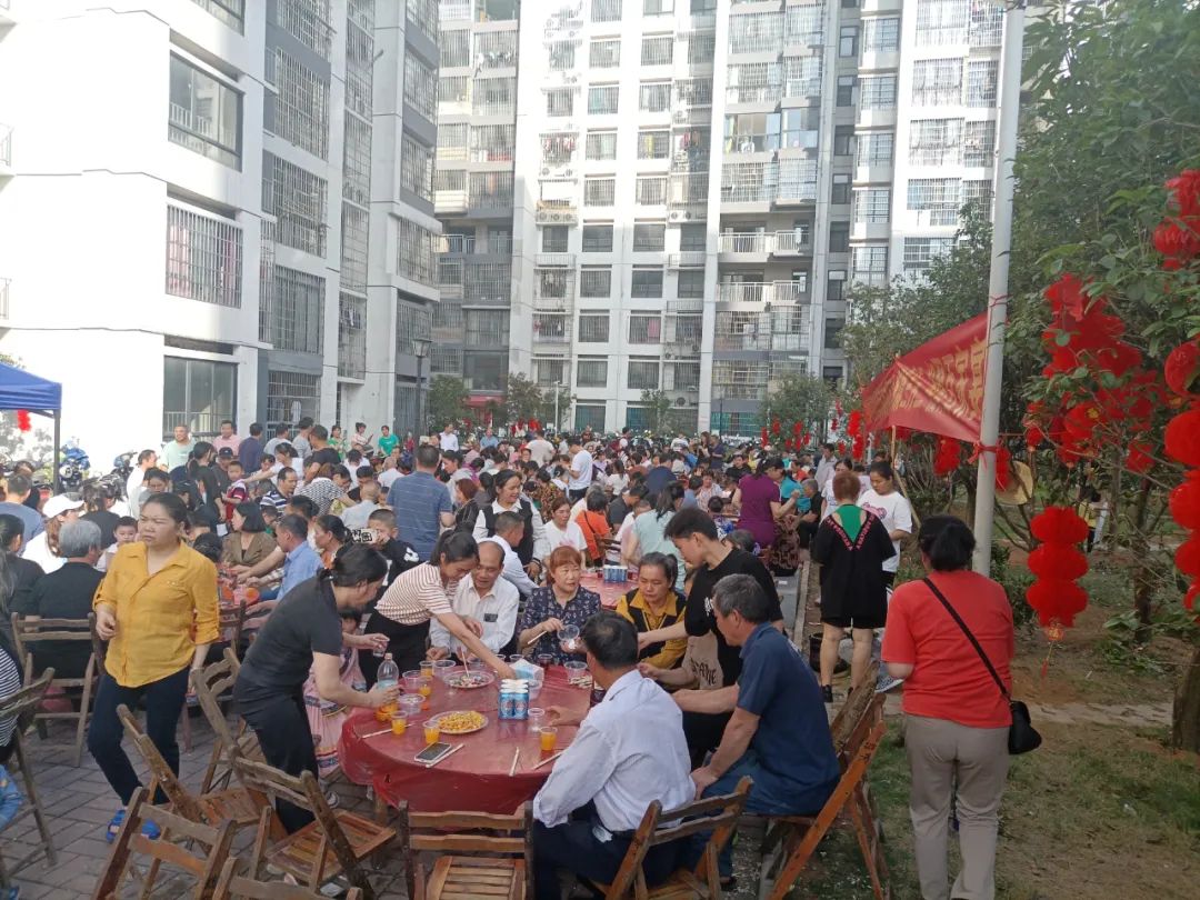 小区居民自发举办百家宴,大家欢聚一堂,举杯庆祝顺利办理了这来之不易的房产证。