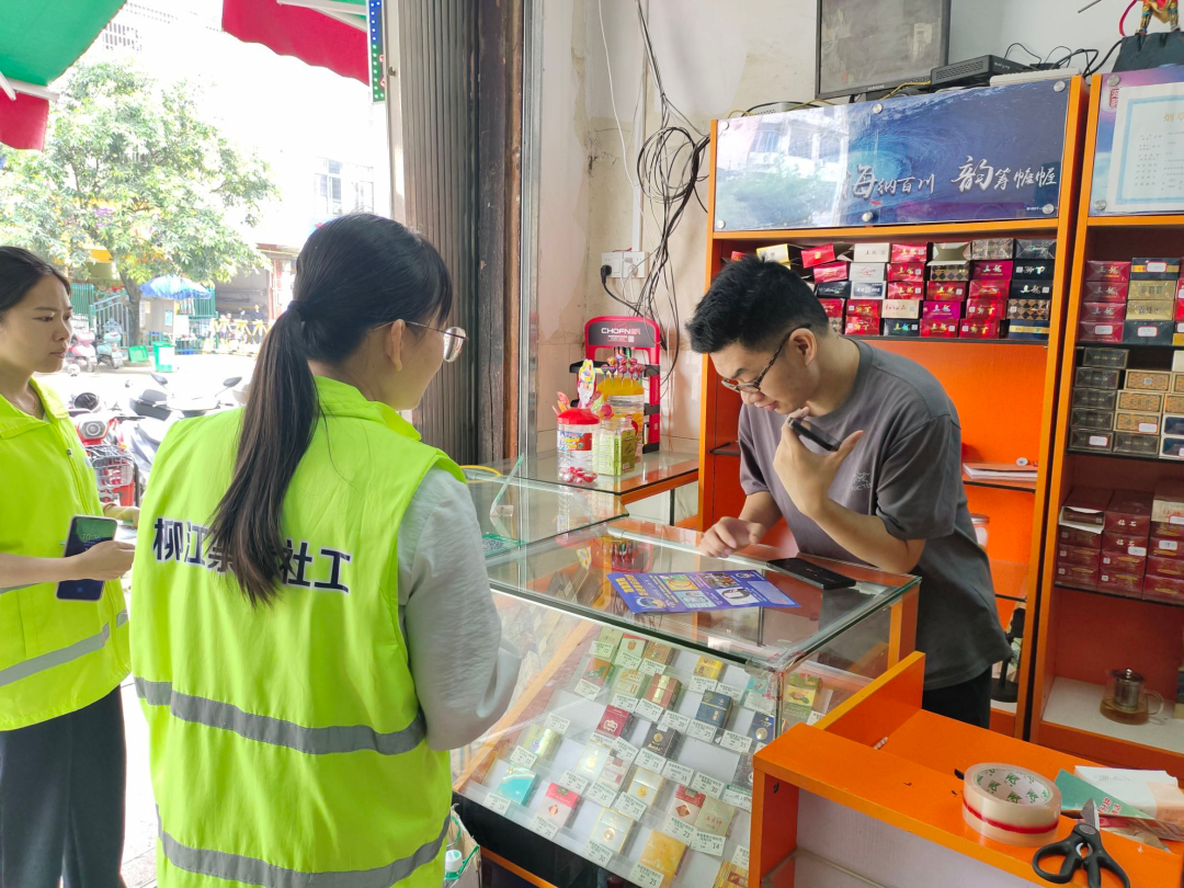 活动期间,通过禁毒宣传车流动广播宣传的方式,在集市、校园周边和村屯巷尾等人群聚集地,循环播放禁毒宣传音频,同时还向过往群众发放禁毒宣传手册,详细讲解新型毒品依托咪酯的形态、特征及危害,并呼吁群众发现身边有涉毒可疑人员和事件要立即向有关部门举报。重点对校园周边商户宣传禁毒法律法规,倡导严把关零食、饮料等食品进货渠道,决不能贩卖类似“上头电子烟”等有“毒”物品。