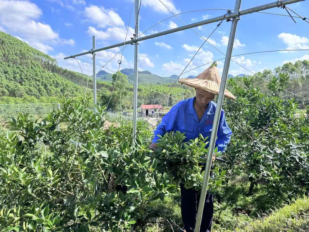 据悉,该基地是甘贡村党支书韦柳平带领周边8位脆蜜金桔种植户,于2020年建设,共流转土地140余亩,以家庭农场的形式运营。该基地提供了多个就业岗位,吸引周边村民“家门口”就业,工人们在不同的季节负责覆膜、摇花、剪枝、采摘等日常管护,到了丰收采摘季节,用工人数需要很多,土博特色“桔”产业成了农户增收致富的“金钥匙”。