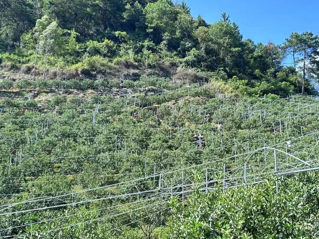 立秋以后,土博镇甘贡村脆蜜金桔种植基地,可见山坡满目葱郁,脆蜜金桔进入新的生长阶段,工人们的身影穿梭在果树间,手脚麻利地正在进行抹芽管护,奋斗着自己的新生活。