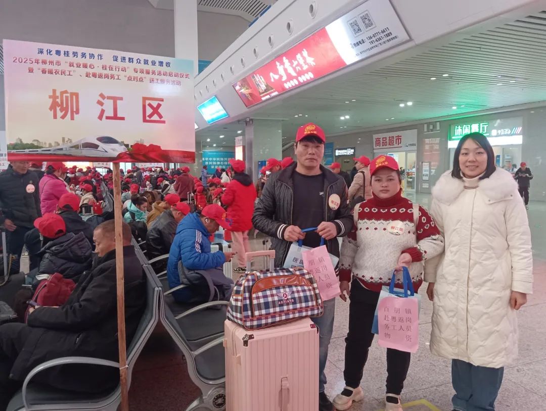 2月7日,百朋镇开展2025年“点对点”赴粤务工免费暖心专列送工服务活动,安排专车接送6名务工人员直达柳州火车站踏上新一年的返岗就业之路。