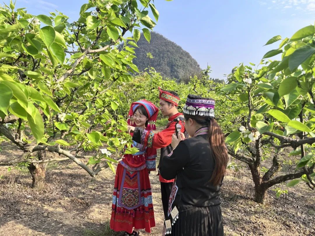 三月三,这个充满魅力的传统节日,在里高镇被演绎出别样的精彩。当绚丽的民族服饰与洁白如雪的梨花相互映衬,整个里高镇的梨园成为了一幅绝美的画卷。