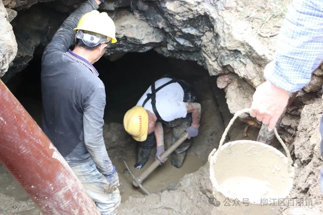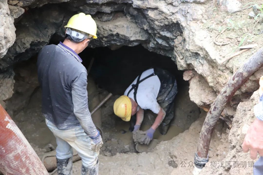 4月27日,小编来到小山村中兵屯,村民已自发携带锄头、铁锹和水桶等工具赶往地下水源点。作业现场分工有序:最内侧的村民挥动锄头挖开淤积泥沙,将装满泥浆的桶递给外围接应人员;中间层的村民接力转运泥桶至堆放点;抽水机则在清理区域旁持续运转,确保地下水不断被抽出。随着内部淤塞层逐渐剥离,抽水管道内阻力减小,水流流量稳步攀升。村民一边清淤疏堵一边优化水泵位置,最终使地下水源通过畅通的管道奔涌而出,通过协作清运与机械抽水的双重保障,春耕灌溉用水难题得以破解。