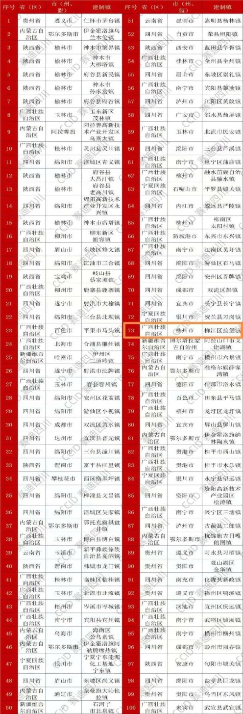 位列中国西部百强镇