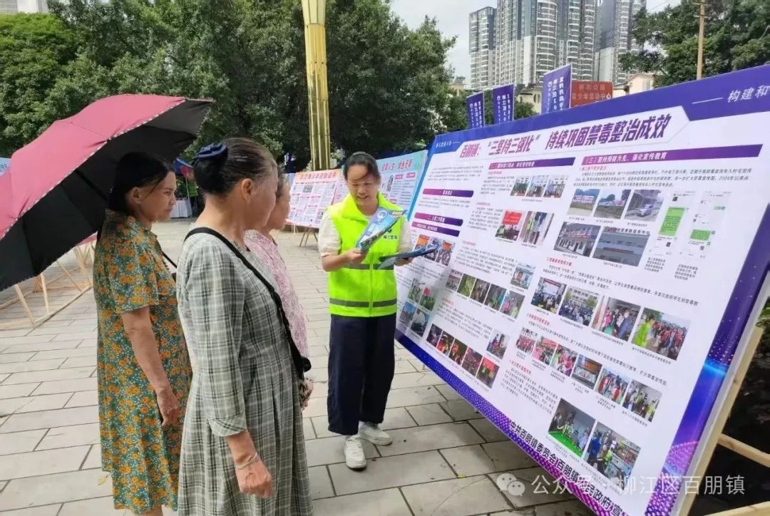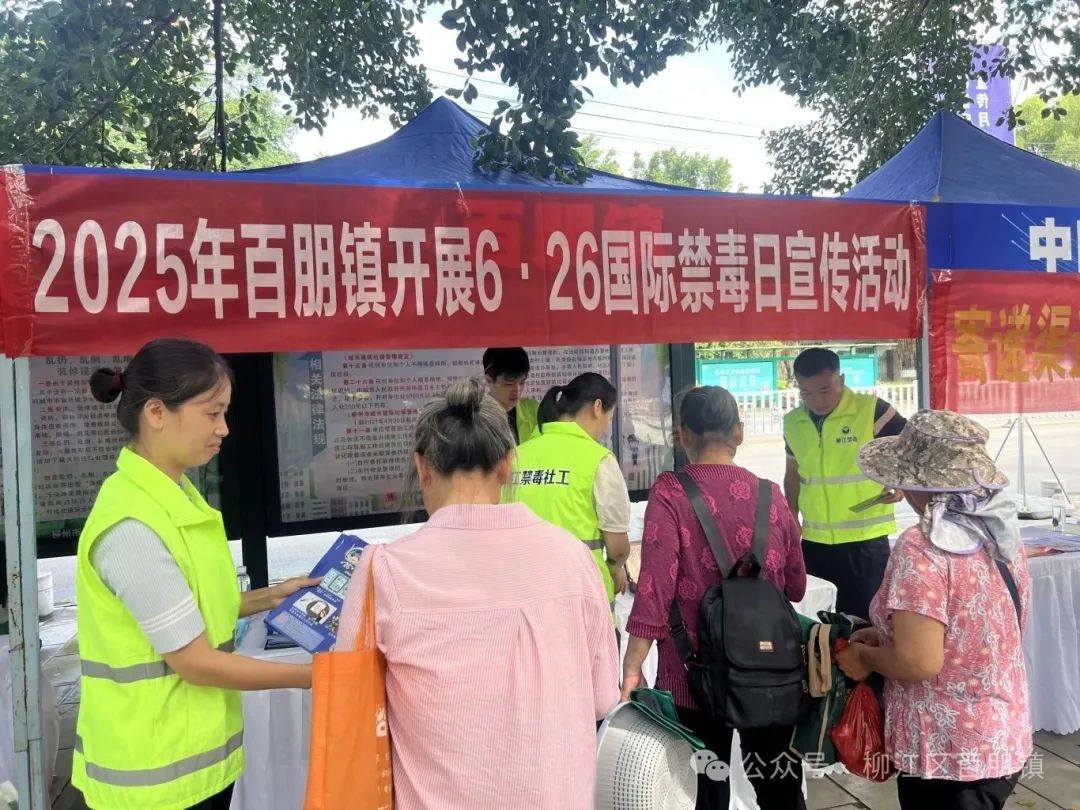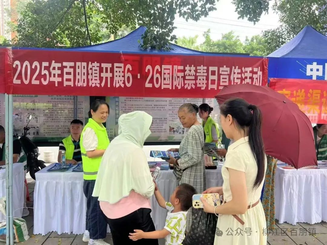 2025年6月是全国第15个"全民禁毒宣传月"。为进一步加强青少年毒品预防教育工作,提升青少年防范药物滥用意识,6月12日,由广西第二强制隔离戒毒所与柳江区禁毒委员会联合主办的"防范青少年药物滥用"柳江区2025年全民禁毒宣传月活动启动仪式隆重举行,百朋镇参与活动演出,并在展板区开展禁毒宣传活动。