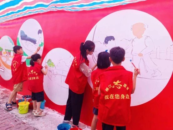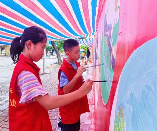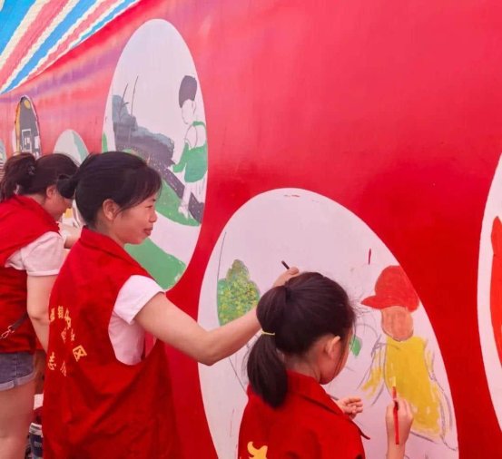 “快看呀!这幅画里可有我的手笔呢!等以后和同学路过这儿,我就能骄傲地指给他们看啦!” 小小志愿者们举着画笔,脸上洋溢着雀跃与自豪。