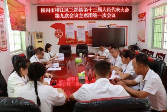 7月11日,三都镇第十三届人民代表大会第九次会议胜利召开!本次会议应出席代表64名,因事、因病请假代表9名,实到代表55名,符合法定开会人数,镇党委书记余文波主持会议。大会在庄严的中华人民共和国国歌声中开幕。