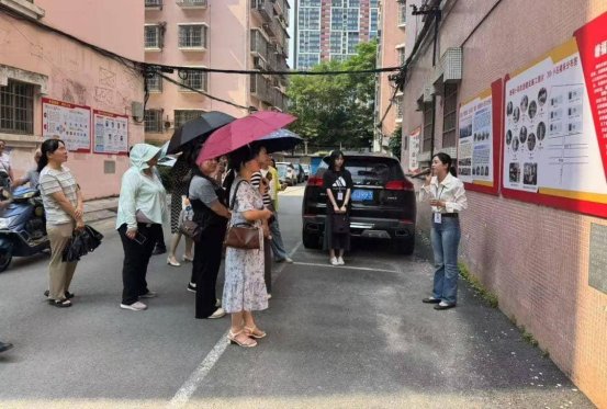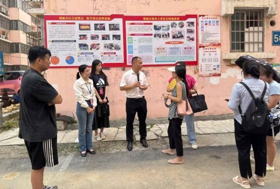 在柳东社区党委书记罗维森与讲解员黄秋香的带领下,交流团一行实地参观了塘福小苑的居民议事角、文明建设、小区治理等。议事角架起沟通桥,让诉求有回音、难题好化解;宣传栏树起文明镜,用榜样照亮新风尚;公示栏搭起互学台,以家风聚起正能量,日子过得更和睦。