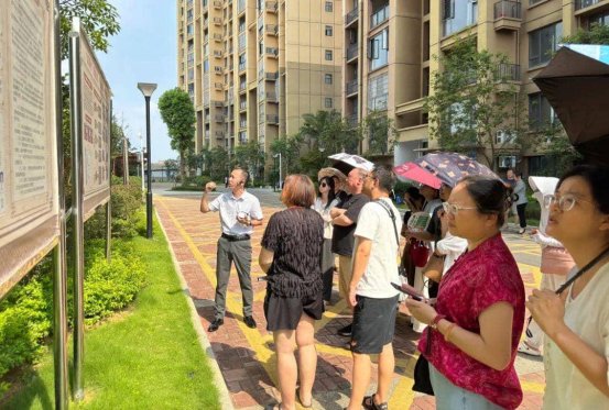 参观一品嘉园小区过程中,荷塘社区党委书记粟招宇向交流团介绍,小区以“社区党委引领、小区党支部主导、物业公司执行、物管会监督、楼长参与”的“五位一体”模式推进治理,同步建立“民主议事协商五部曲”(事前提议、审议、决议、办理、评议),推动地下停车场出口硬化、体育设施安装等工作落地。