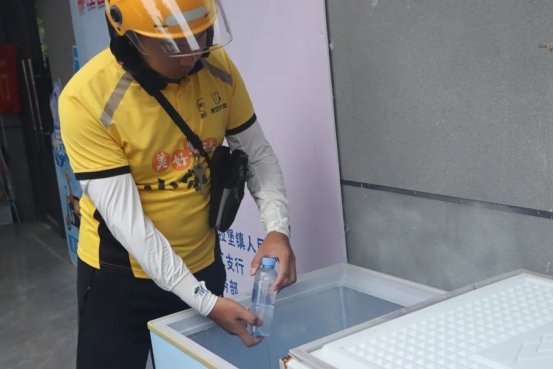 “没想到真有免费冰水。这水来得太及时了,像及时雨一样,解渴又暖心!”刚刚完成一轮清扫的环卫工人韦女士拿起一瓶水畅饮。外卖骑手王师傅边喝着冰水边感叹道:“这天气太热了,跑一圈下来浑身是汗,有了爱心冰柜,随时能喝到冰水,还能在驿站吹空调休息,手机充电也很方便,真是太贴心了!”