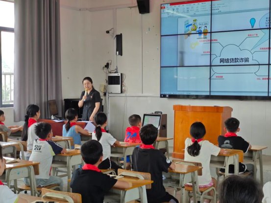 在多媒体教室,三都法庭工作人员通过图文并茂的PPT向同学们科普网贷、刷单、网络交友、游戏充值等不同类型的电诈骗局,并通过有奖问答的方式检验同学们学习反诈知识的成果。三都镇党委政法委员、副镇长谢远南通过剖析身边的案例,将反诈知识与日常生活场景深度结合,让学生进一步提高警惕,筑牢反诈思想防线。