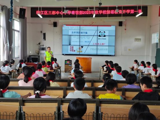 新学期伊始,为切实提升青少年对毒品与诈骗的认知防范能力,9月4日,三都镇禁毒办联合镇团委、妇联、关工委、新时代文明实践所以及三都法庭走进三都中心小学寄宿部,开展禁毒、防范电信诈骗宣传教育活动,为学生们上了一堂干货满满的“开学第一课”。