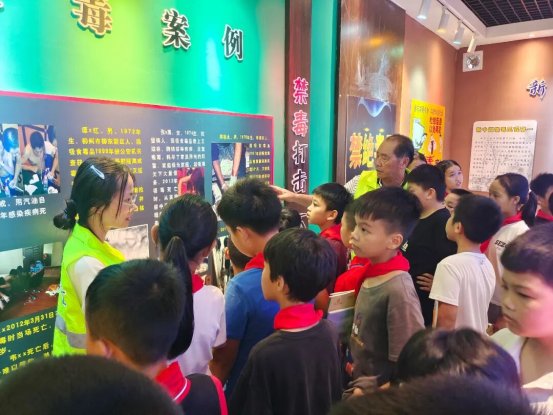 来到禁毒教育基地,谢远南副镇长结合禁毒教育基地内生动的图片和真实案例,向学生们详细介绍了传统毒品、新型毒品的种类、毒品的危害以及防止毒品侵害的方法。工作人员以及宣传志愿者摆放毒品仿真样品,发放禁毒宣传知识彩页,让同学们进一步了解到各类毒品的性状,直观地认识到毒品对个人健康、家庭完整、社会稳定的严重危害,告诫学生时刻保持警惕、坚决抵制诱惑,引导同学们在遇到疑似毒品不法侵害时,勇敢说“不”。