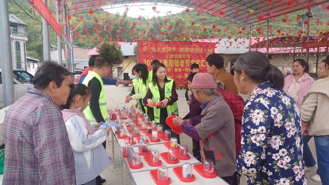 重阳节是中国传统节日之一,11月1日,三都村板元屯开展“九九重阳话团圆”活动,屯里的年轻人齐聚一堂,为老人们准备一场丰富的活动盛宴。三都镇禁毒办以“团圆”为契机,入屯开展禁毒、预防网络电信诈骗宣传,将团圆的祝福与节日的关爱送到群众身边。