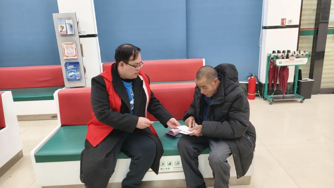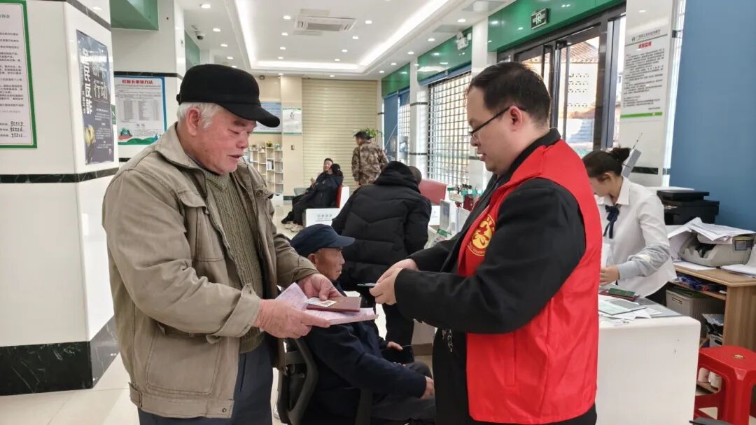 中心迅速梳理特殊流程,主动对接医院与监护人。工作人员专程前往土博镇取回材料,统筹带领监护人至银行办理。现场全程协助核对信息、核验监护证明,高效完成三人办卡。随后护送腿脚不便的监护人回家,并将证件送回医院,确保黄某养老金及三人医保正常使用。