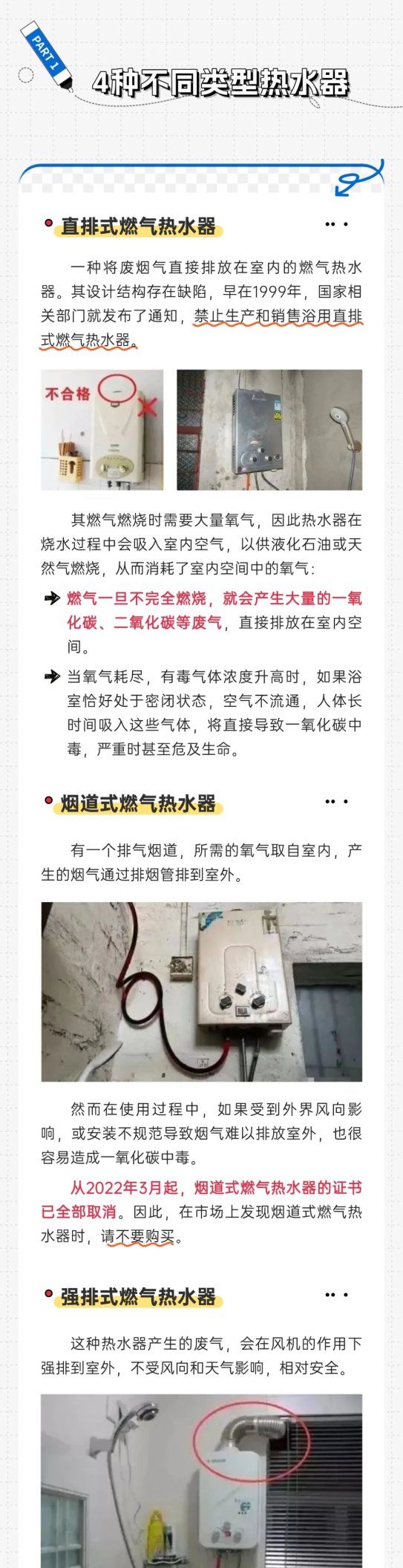 在排查中,最令人揪心的就是部分居民仍在使用国家早已明令禁止的直排式热水器,更有甚者把热水器和排气设备安装在浴室内,不合规的用气设备和不正确的安装使用方法相当于在身边埋了一颗“毒气弹”。