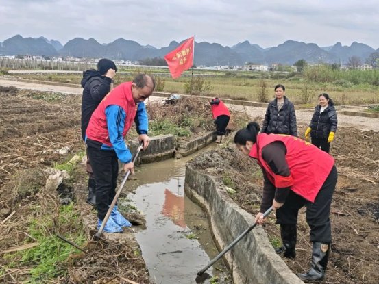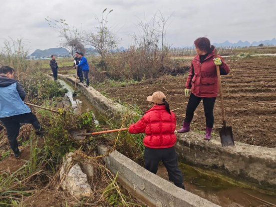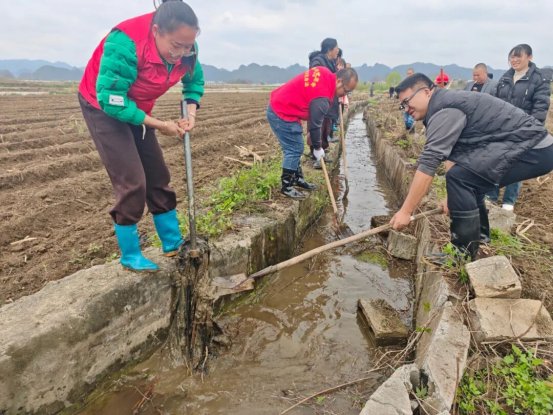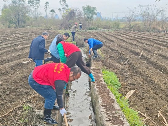 3月10日,拉堡镇组织干部职工、村委工作人员与热心村民一同开展黄岭村农田水利设施清堵修复作业,干部群众合力破解灌溉用水难题。