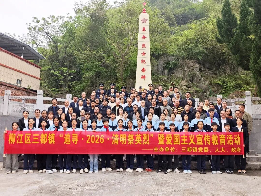为缅怀革命先烈、传承红色血脉,引导广大领导干部及各族青少年铭记中华民族艰苦卓绝的奋斗历程,4月2日上午,三都镇组织开展“追寻·2026·清明祭英烈”暨爱国主义宣传教育活动。镇党委、人大、政府班子成员,镇直各部门各单位负责人,各村(社区)党支书,三都司法所、三都法庭、柳江检察院派驻三都检察室、三都派出所、三都卫生院、三都市场监督管理所、三都邮政所、桂林银行三都支行代表,以及三都中学、立新学校、三都中心小学师生代表等100余人齐聚三都镇革命烈士纪念碑前,共同追思先烈、汲取奋进力量。
