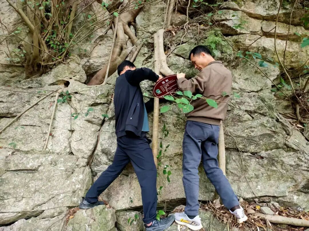 挂牌现场,工作人员克服地形复杂、树木高大等困难,精准安装铭牌,同步开展树木健康巡查,建立完善电子版管护台账,将 “乡愁树” 保护纳入林长制日常管护体系,落实 “镇-村-护林员” 三级管护责任,确保每一棵老树都能健康生长、代代相传。