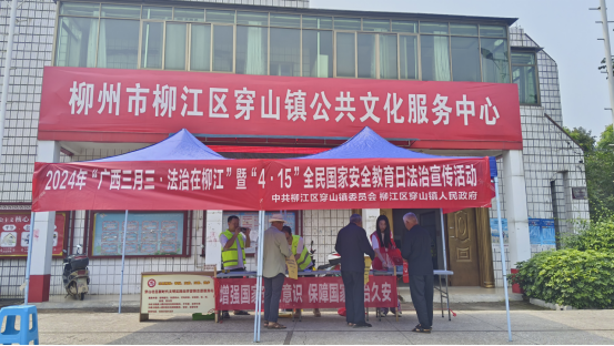 为深入贯彻落实习近平总书记关于加强国家安全教育的重要指示,提高全民国家安全法治意识,营造维护国家安全的浓厚法治氛围,增强防范和抵御安全风险能力。4月24日上午,穿山镇公共安全办联合镇禁毒办在穿山社区文化广场开展2024年“广西三月三·法治在柳江”暨“4·15”全民国家安全教育日法治宣传活动。