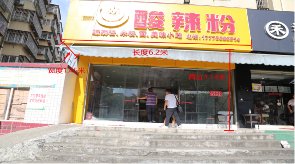 事故地点位于柳江区拉堡镇基隆综合区兴国大道18号金兴苑B8栋1层商铺(图1),经现场勘查,该广告牌距离地面水平高度约3.14米,长约6.2米,宽约1.45米。广告牌北面有一个维修入口,尺寸约为60×60厘米(图2、图3),死者莫某林尸体右手手掌有明显的电击伤痕迹(图4),事故现场的地面上有被烧焦的电线(图5、图6)。