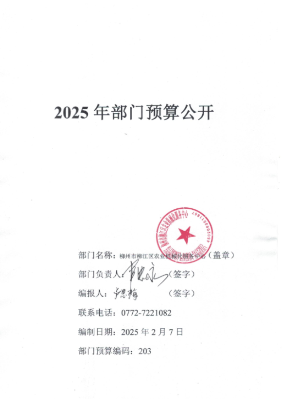第二部分:柳州市柳江区农业机械化服务中心2025年部门预算情况说明