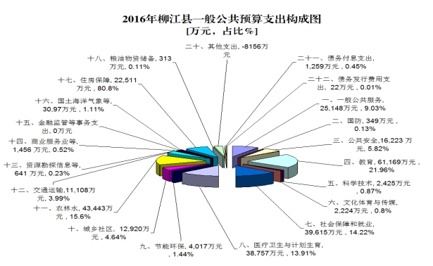 2016年全县当年财政总支出283,450万元,其中:一般公共预算支出278,541万元,同比增加45,794万元,增长19.7%;上解支出2,500万元;地方政府债券还本支出2,409万元。