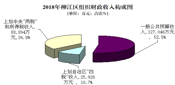 2018年,全区组织财政收入241,866万元,完成预算238,000万元的101.6%,同比增长20.4% 。其中:一般公共预算收入127,046万元,完成预算106.6%,同比增长23.1%;上划自治区收入25,926万元,完成预算90%,同比增长13%;上划中央收入88,894万元,完成预算98.8%,同比增长19%。