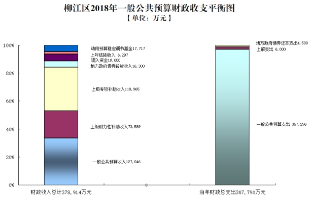 2018年,全区财政收入总计378,914万元,当年财政总支出 367,796万元。收入和支出相抵后,结余11,118万元,其中:补充预算稳定调节基金10,687万元,专项结转431万元。